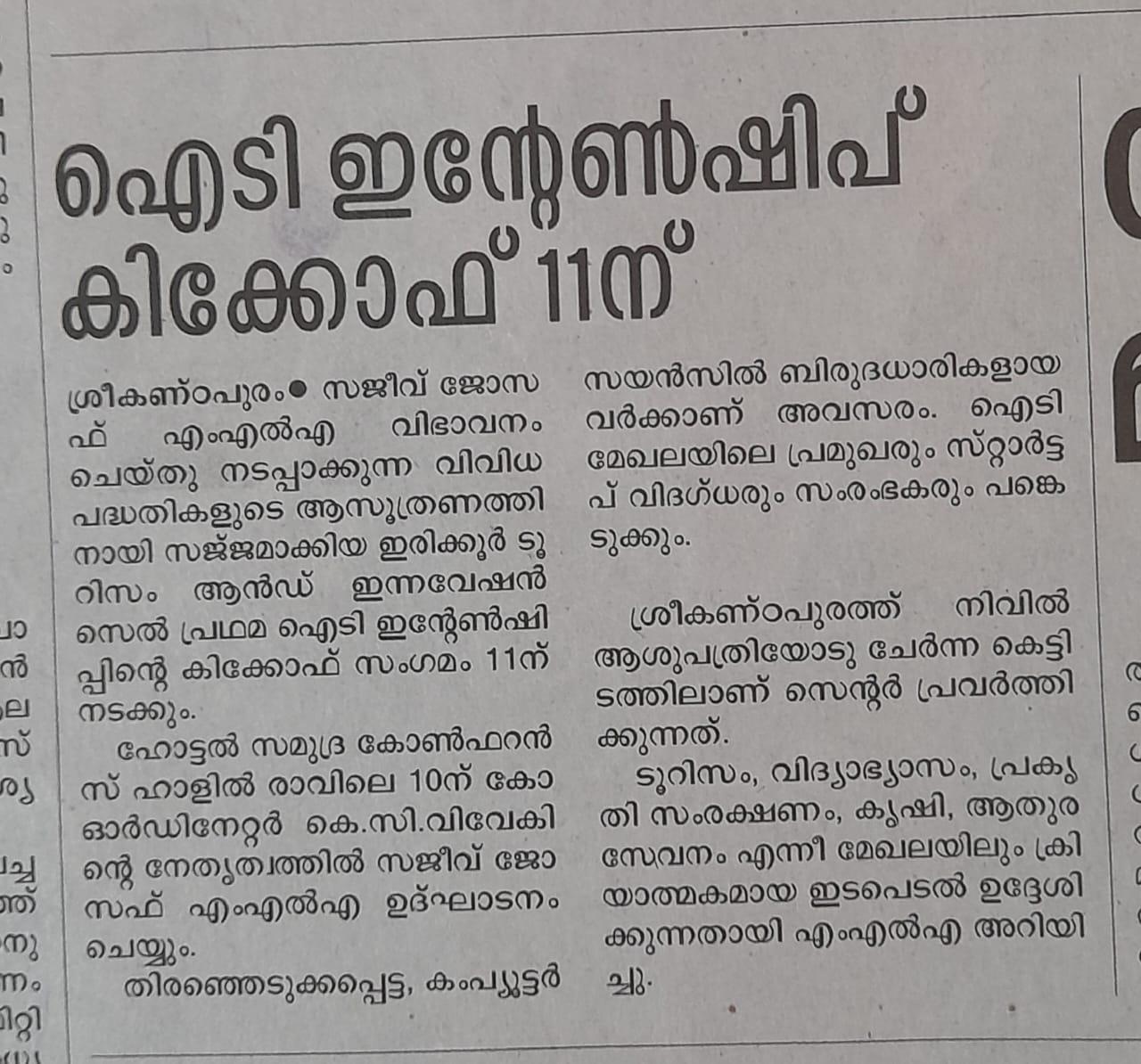 by visionary Adv. Sajeev Joseph MLA in collaboration with IT Head & Coordinator Vivek KC, the